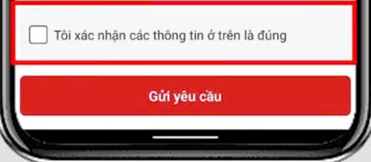 Tích vào ô: Tôi xác nhận các thông tin trên là đúng. Và ấn gửi yêu cầu